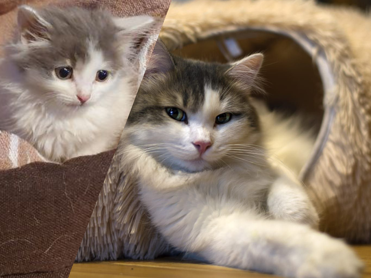 "Добрый день! Ровно год назад мы взяли одного из котят , которых в декабре выкинули в мусорный бак. Первое фото - это Семен ровно год назад, таким мы его взяли. И вот в какого шикарного кота он вырос. Любим его безумно. Спасибо что спасли нашего котика!"