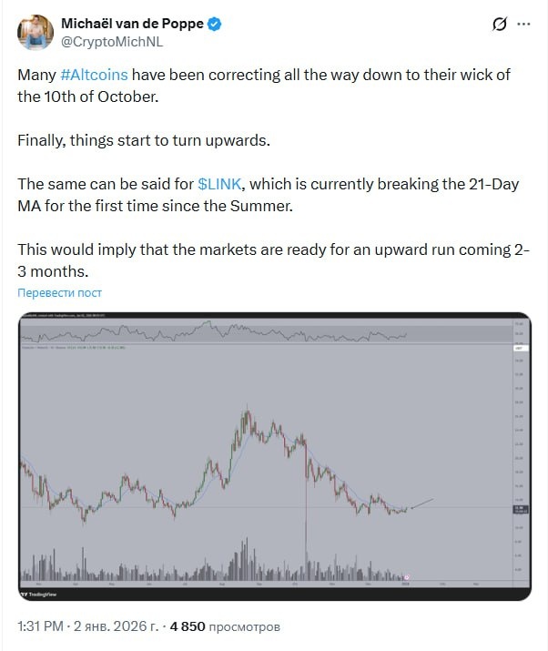 Наконец ситуация начинает разворачиваться вверх. То же самое можно сказать и о LINK, который впервые с лета пробивает 21-дневную скользящую среднюю. Это может означать, что рынки готовятся к восходящему движению в ближайшие 2–3 месяца.
