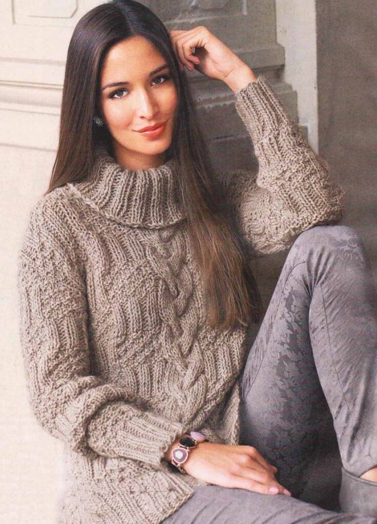 Тёплый свитер косами.