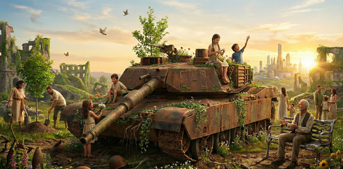 Мир на Земле не подписывается в кабинетах президентов. Он начинается не на трибунах и не в штабах. Мир начинается в твоей кухне. В твоей гостиной. В твоём сердце.