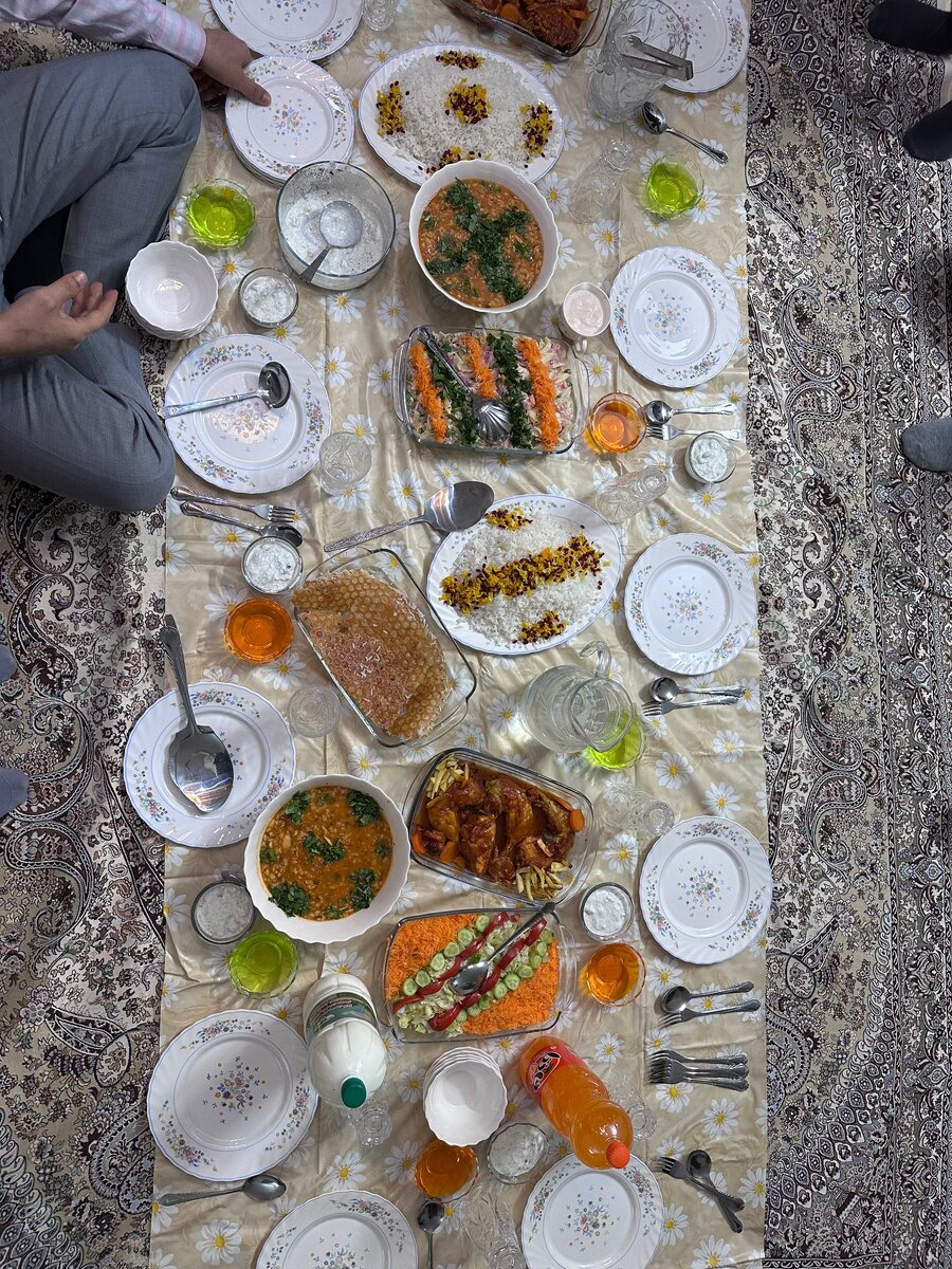 В Иране очень распространено накрывать обед прямо на полу: когда много гостей или просто по настроению