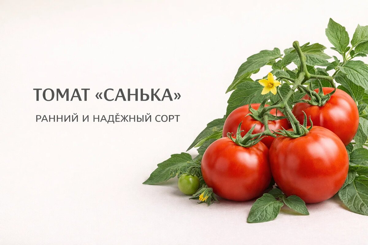 Томат Санька — раннеспелый детерминантный сорт, который годами удерживает популярность не из-за моды, а из-за предсказуемости. Его часто выбирают как «первый томат сезона»: он начинает плодоносить тогда, когда большинство сортов только наращивают зелёную массу. 💡 Интересный факт: в средней полосе Санька нередко отдаёт первый полноценный сбор на 10–14 дней раньше стандартных детерминантных сортов. ☝️ Сорт рассчитан не на впечатление, а на результат. Главный нюанс — размер плодов и их вкус: он ровный, спокойный, без выраженной сладости, и это нужно учитывать заранее. Томат Санька — результат российской селекции, ориентированной на нестабильное лето. Это заметно по его поведению: сорт не «разгоняется» в ущерб завязи и не уходит в ботву даже при избытке азота. 💡 Практическое наблюдение: многие старые отечественные сорта создавались с расчётом на перепады температур, а не на тепличный идеал — Санька как раз из этой логики. ☝️ По типу роста сорт детерминантный, с чётким ограничением по выс