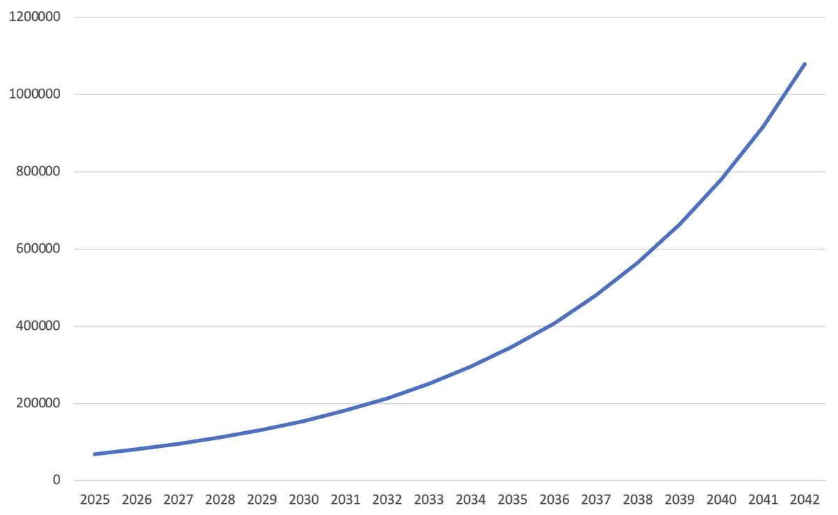 Это активно пополняемая часть накоплений. Пополняю сразу на максимально разрешённую сумму в 10К евро, чтобы минимизировать расходы на комиссиях. За год было три пополнения, что эквивалентно $ 33,876. Как и в российской части, структура портфеля простая и не меняется: Ребалансировка проводится пополнениями. Так как каждое пополнение довольно крупное, то этого достаточно. Сумма чистых активов: $ 68,527. Тот момент, когда начал попадать на налог на наследство в США... В этом году портфелю удалось сократить отставание от S&P 500. Эх, жаль, что такие доходности с нами ненадолго. С такой доходностью уже к 2042 году можно было бы стать долларовым миллионером даже без пополнений (см. верхнюю картинку). Так как бумаги всего две, предлагаю посмотреть подробнее на их доходности. Оба фонда американские, то есть выплачивают дивиденды. VT: рост со $ 117.48 до $ 141.06 (+20%), див. доходность $ 281 (0.5%)