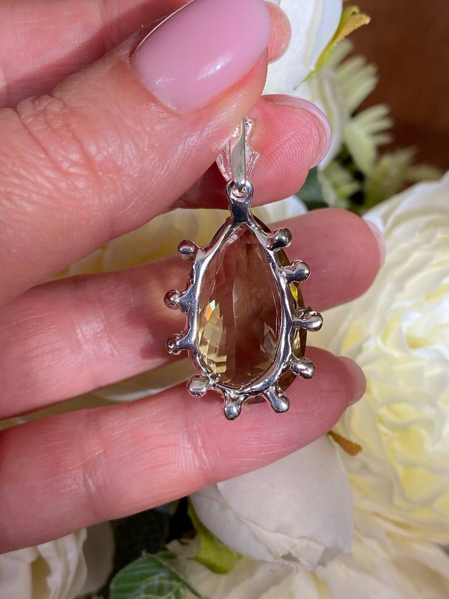 Кулон из серебра 925 пробы, покрытого родием и золотом 14к , с натуральным лемотрином. Размер кулона 39х20х7мм . Изделие в единственном экземпляре. Повтора не будет.