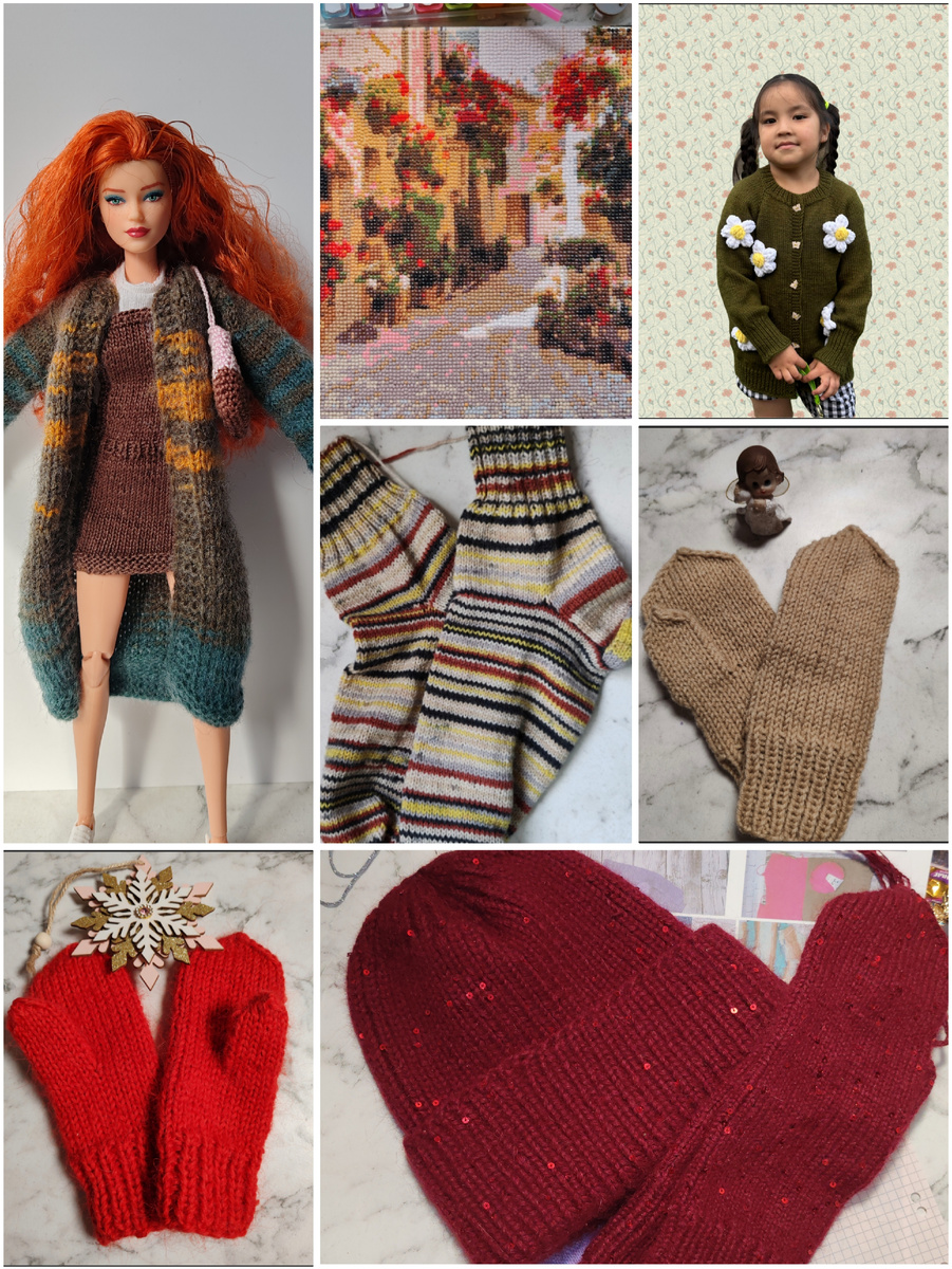 Кроме того, я немного повязала для Барби (кукольный гардероб тоже требует обновления!) и собрала одну алмазную мозаику. Маленькие победы тоже считаются!
