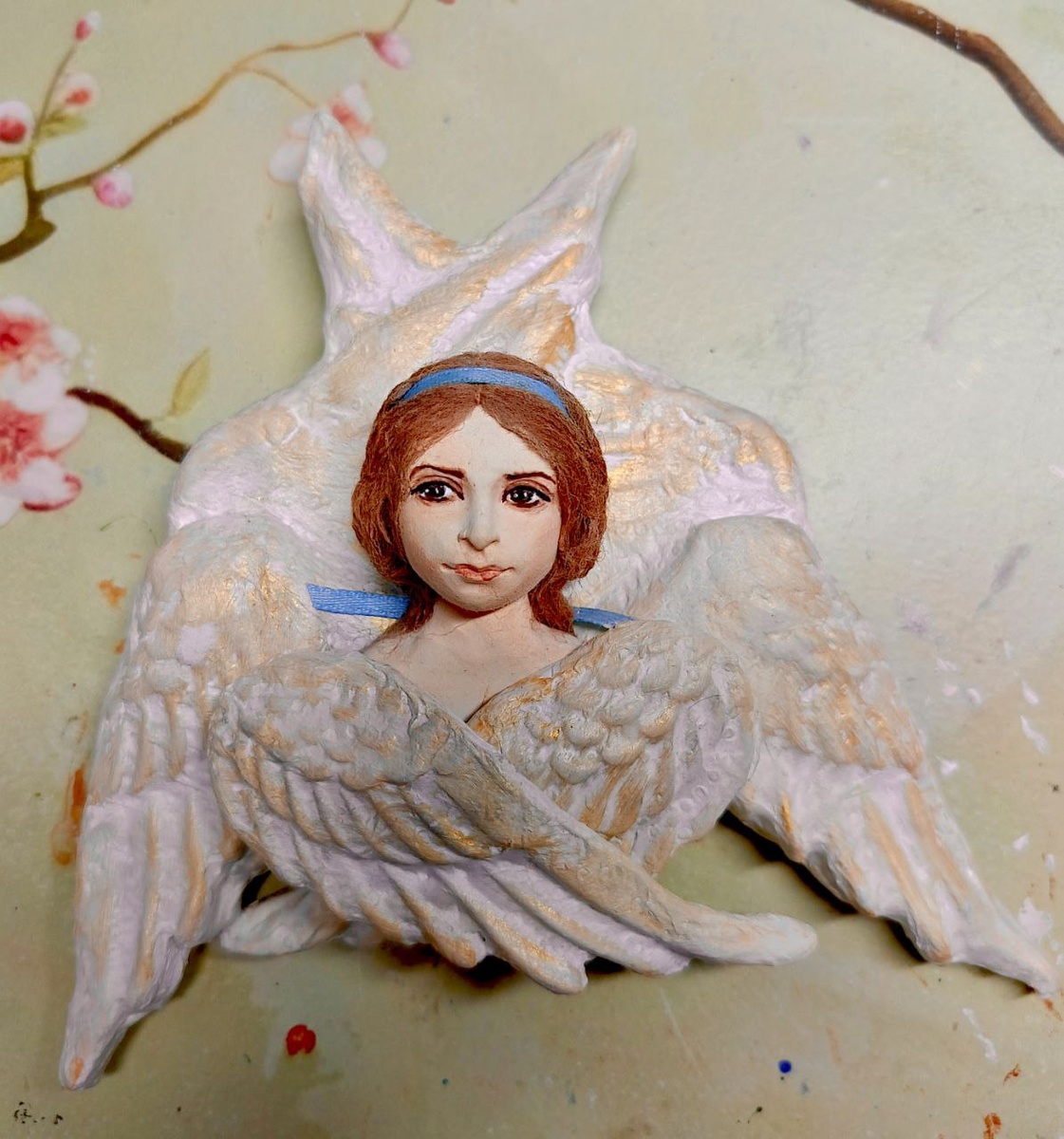 ! Хочу немного изменить формат канала. Изначально, он был просто для выставления моих работ. Но, теперь, помимо своих кукол, мне хочется поделиться своими мыслями, рассказывать о чем думаю, делиться понравившимися стихами ... Работаю сейчас очень мало, прицепившаяся болячка, операция и вобще вся терапия забирают много сил. Самое сложное - встать утром, не менее сложное - уснуть вечером. Самое страшное - отсутствие внимания дорогого мне человека... Это выбивает почву из под ног и опускает руки. Возможно я справлюсь, возможно... Было очень много творческих идей, и очень очень хочется работать. Не могу себя заставить. Ну, а на фото , одна из моих предновогодних работ. Серафим. На новогоднюю ель в одном из Храмов нашего города. Фото с рабочего стола, к сожалению или скорее в спешке забыла сделать финальное.