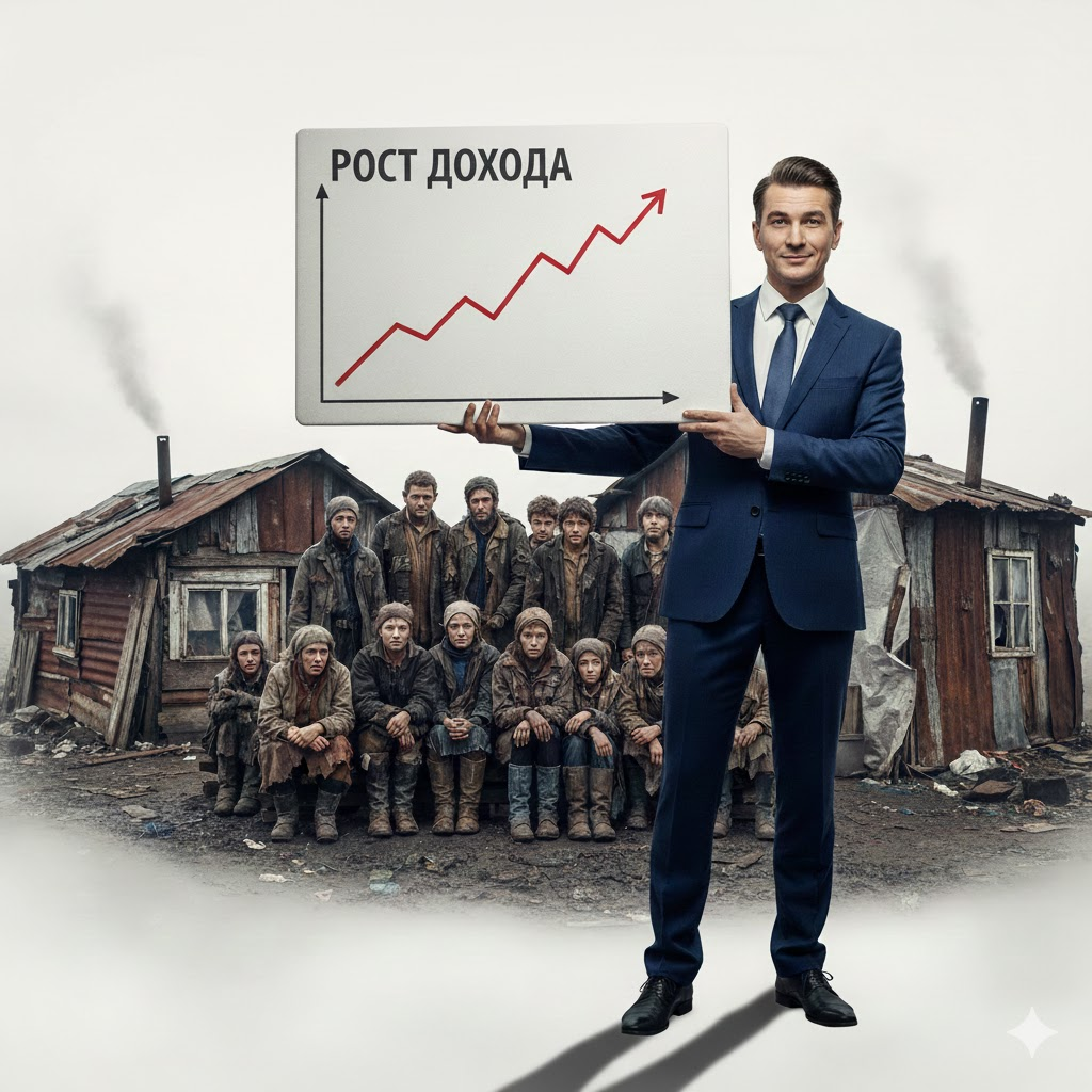 Вы сидите на кухне. Последний чек из магазина с тремя пакетами скромной провизии вызывает легкую панику. Родители в регионе рассказывают, как закрылась «единственная нормальная поликлиника». А потом вы включаете телевизор или открываете официальный отчет. И там — мажорный аккорд: «Экономика растет! Бедность сокращается! Благосостояние повышается!»