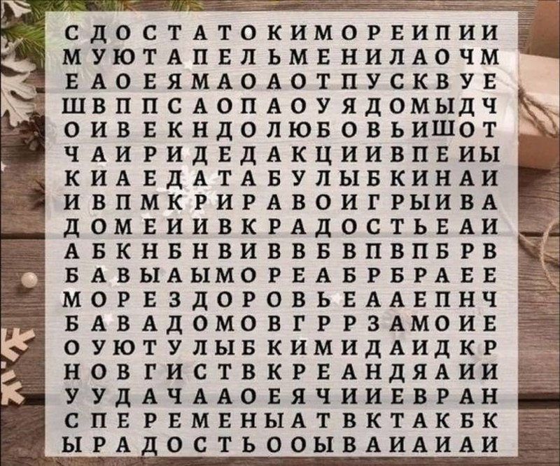 ?❔ А у нас новогоднее гадание🔮 Это гадание действительно точно покажет вам, на что вы настроены. Потому что ваш мозг 🧠 всегда определяет в пространстве то, что резонирует с его программами. В этом квадрате множество слов, но в первую очередь вы увидите то, на котором зафиксируется ваш мозг, а значит у него есть программы созвучные ему. Узнайте, что является для вас самым актуальным в этом году😊. Пишите в комментариях, какое вы увидели слово😉.