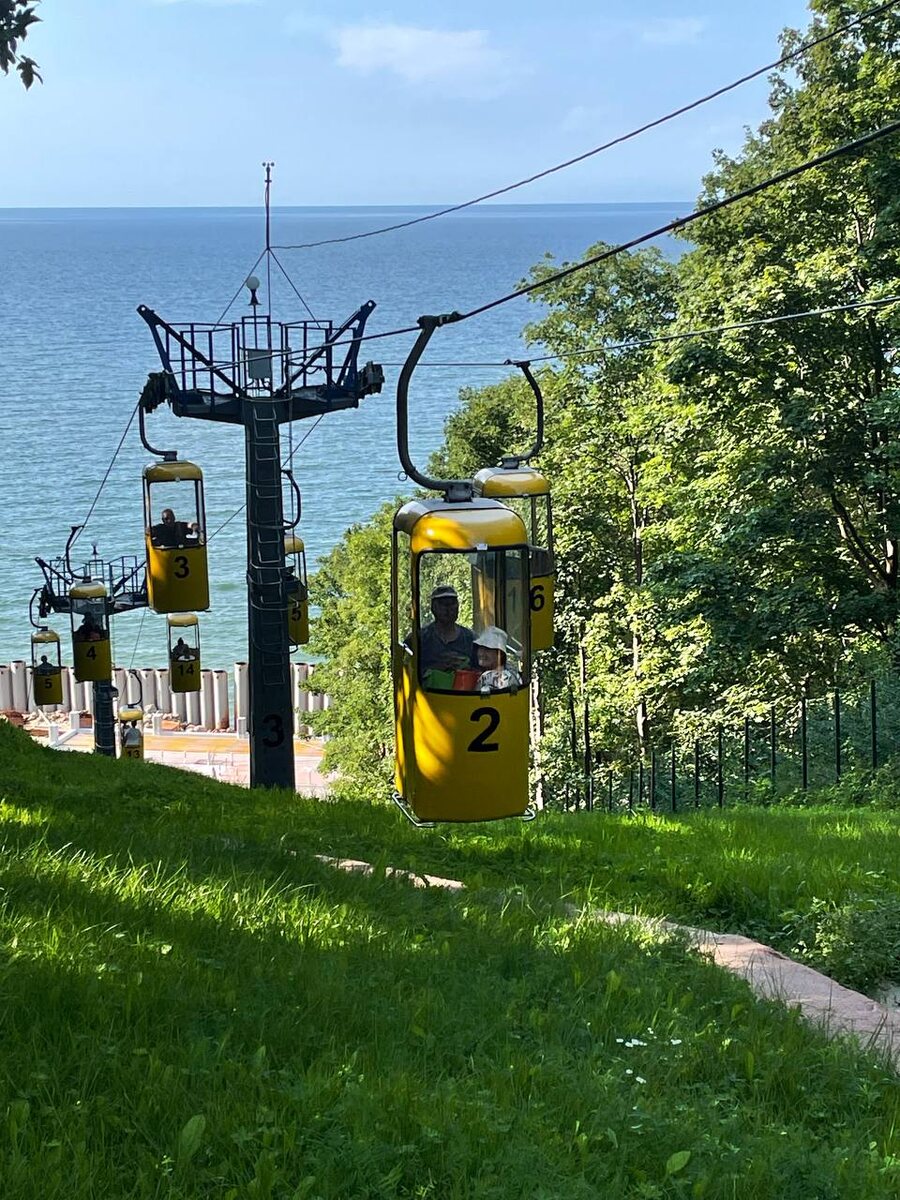 Не проходите мимо! Особенно когда будете в Светлогорске. Если хотите почувствовать себя практически как в к/ф «Асса», то обязательно покатайтесь на фуникулёрах. Спуск и подъём не займут много времени, но незабываемый момент обеспечен. Конечно, не прям, как в фильме, потому что не ялтинская канатка, но не менее живописно. Очереди не избежать, ведь на линии всего 19 кабинок. Но ждать долго не придется, потому что протяженность — 118 метров. А сама канатная дорога работает с 1912 года! Уже 114 лет. Вот такая старожилка.