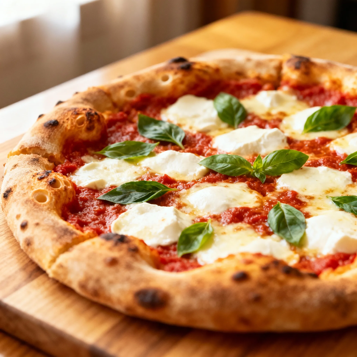 - Дайте пицце постоять 2–3 минуты, нарежьте на кусочки и посыпьте свежим базиликом (по желанию).