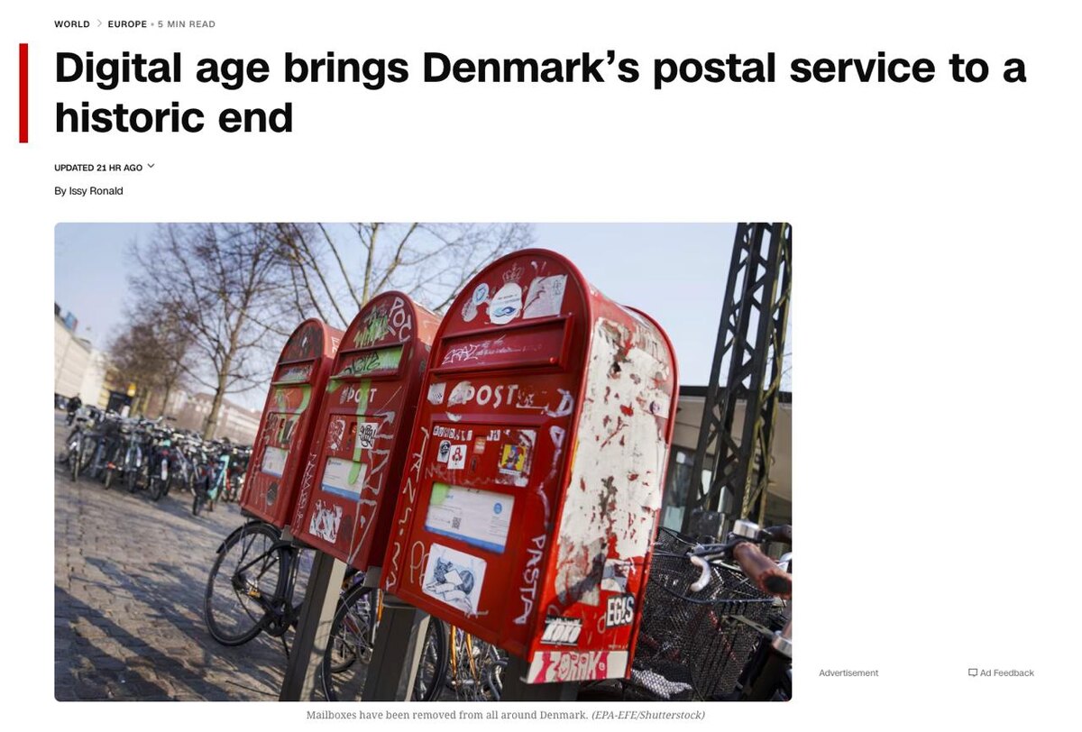 А вот и первое реально историческое событие: Дания полностью отказалась от доставки бумажных писем