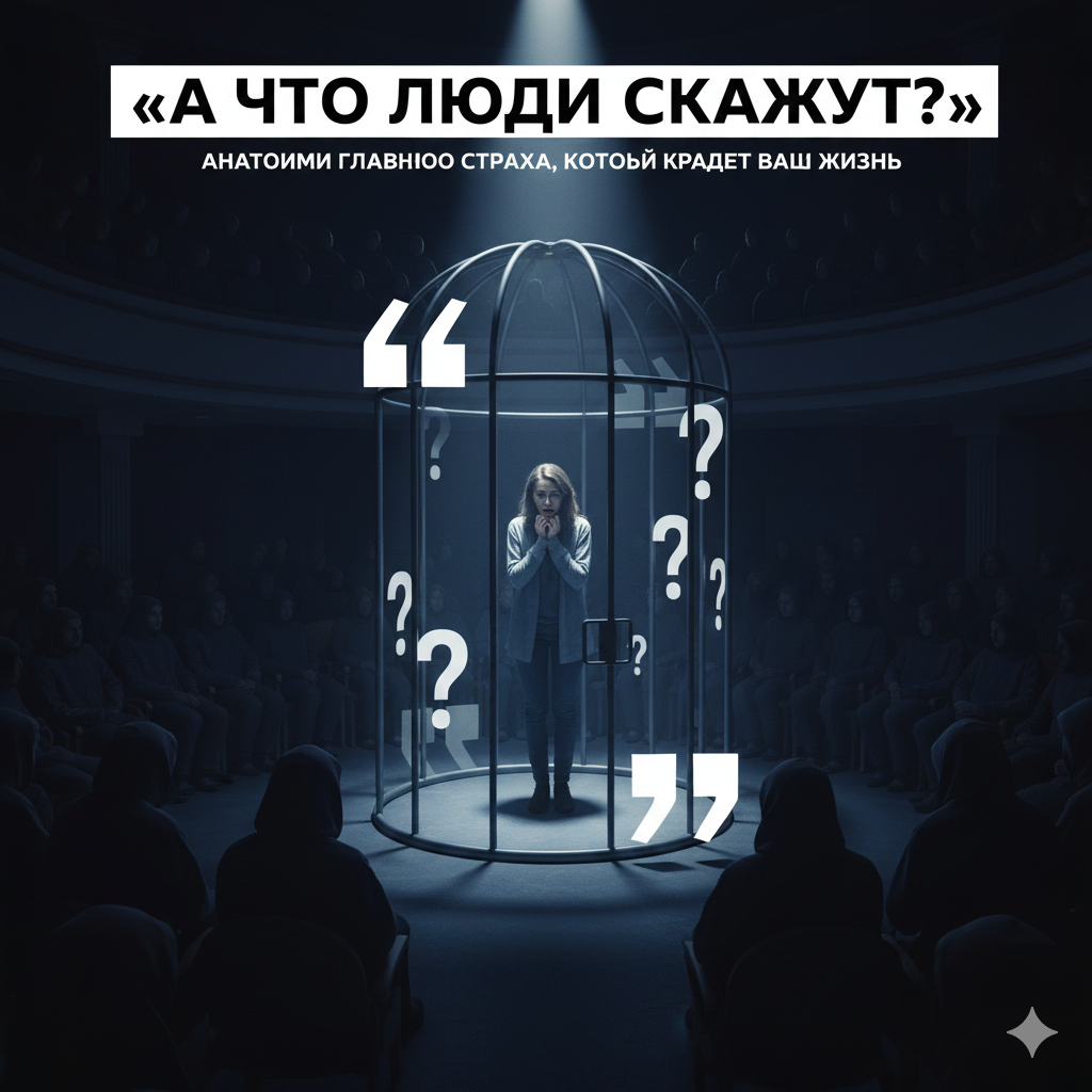У каждого из нас в голове живет этот невидимый «совет старейшин». Это могут быть соседи, бывшие одноклассники, дальние родственники или просто воображаемые прохожие. Перед тем как сделать что-то необычное — уволиться с нелюбимой работы в никуда, развестись, покрасить волосы в синий или завести блог — мы замираем от этой мысли: «Боже, а что люди скажут?».
