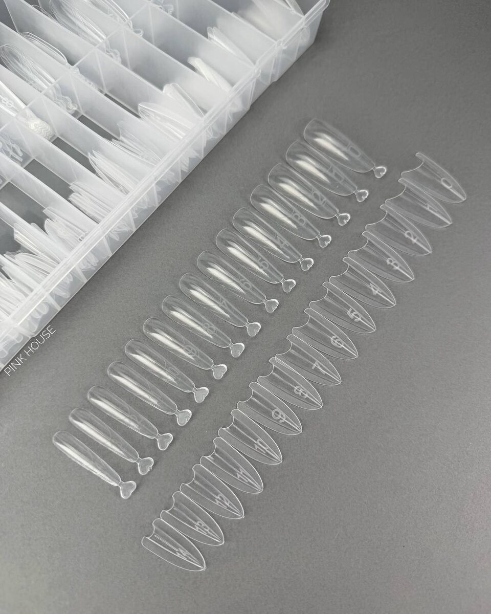 !! БУРГЕР СИСТЕМА — новый вид верхних форм. Это идеальное решение для быстрого наращивания с максимально чистой изнанкой без изнурительного выпиливания. Все лучшее из двух техник моделирования - на нижних и верхних формах соединилось в одном гениальном наборе. Набор состоит из двух частей: нижняя часть формирует подложку и длину, а верхняя — моделирует правильную архитектуру. Именно «изнанка» чаще всего становится проблемой при работе с классическими верхними формами: материал может отпечатываться неровно, внутри появляются бугорки, ступеньки и лишняя толщина, которую потом приходится долго выпиливать. Бургер -конструкция помогает контролировать слой материала и прижим по всей площади, поэтому внутренняя поверхность получается аккуратной и гладкой уже на этапе отпечатки. Это особенно важно, если вы работаете с гелями и полигелями с крупными фактурными блёстками, хлопьями, глиттером или частичками: такие материалы часто «собираются» в неровности и сложно опиливаются фрезой.