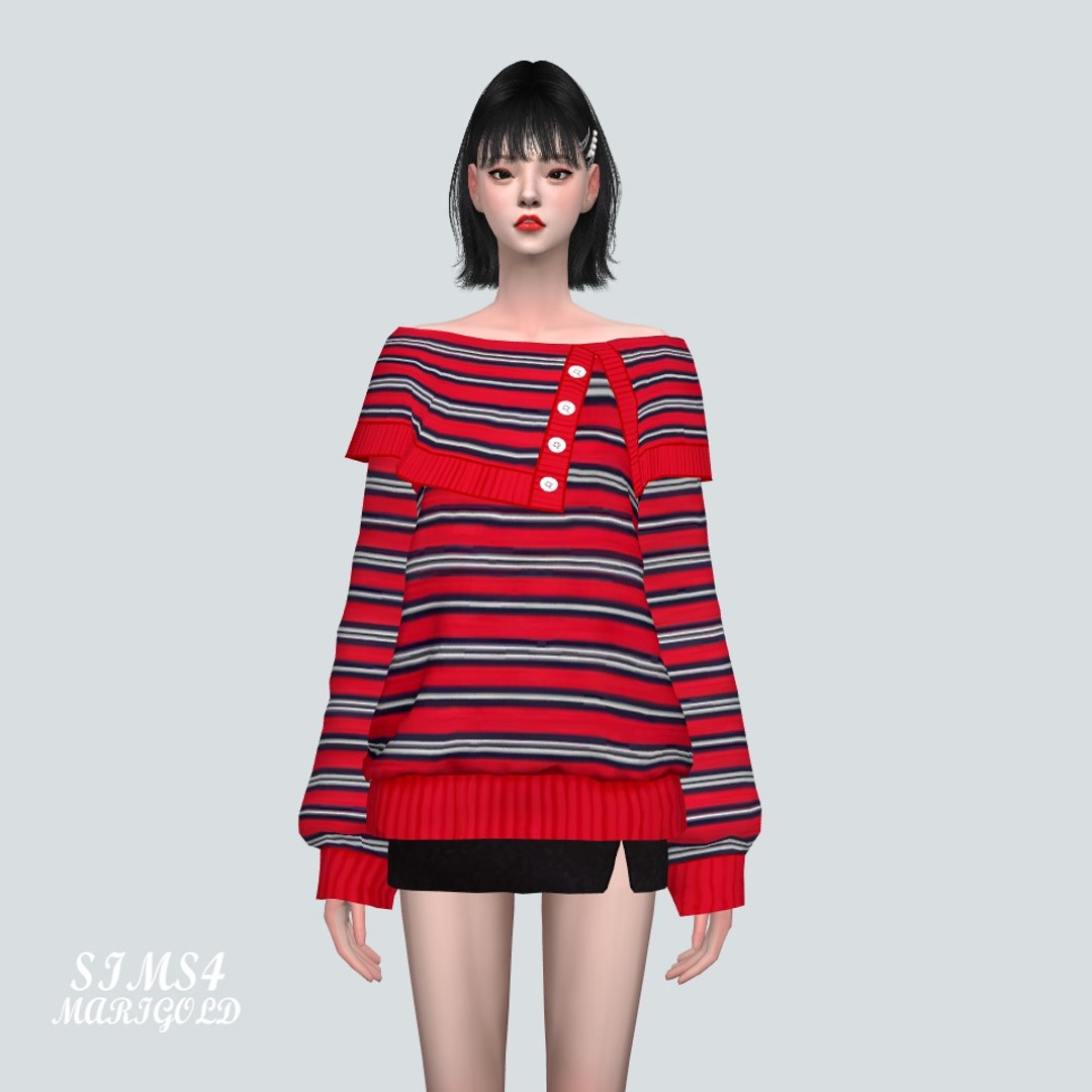 Скачать пользовательский мод Свитер - 39V Off-Shoulder Sweater для Sims 4 - #48расцветок@simsfans_ru