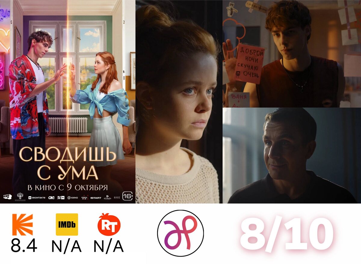 Сводишь с ума (2025) Миленькая любовная зарисовка на тему параллельных вселенных с яркой Милой Ершовой и приятным Юрой Насоновым. Этакий «Дом у озера» на минималках, в чуть более комедийном исполнении и с теплым питерским вайбом. Овер-топ в оценках на КП конечно избыточен — фильм скорее удачно хайпанул, нежели реально отработал такой рейтинг, но проходным он от этого не стал. Нормальная романтика. ▶️ Трейлер