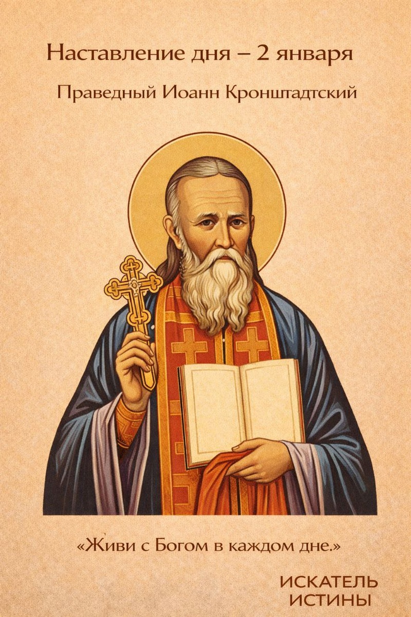 Память праведного Иоанна Кронштадтского Праведный Иоанн Кронштадтский учил жить постоянной молитвой, покаянием и деятельной любовью к людям. Он напоминал, что вера не может быть отвлечённой: она проявляется в милосердии, терпении и доверии Богу во всех обстоятельствах жизни. Его жизнь свидетельствует: когда сердце открыто Богу, Господь действует через человека, утешая, исцеляя и укрепляя других. Пусть и твой день будет наполнен молитвой, вниманием к ближнему и живой верой.