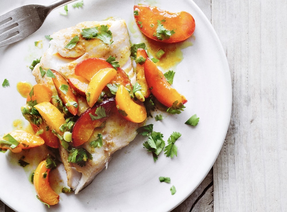 Здесь фрукты не запекаются, а подаются свежей сальсой на уже готовую горячую рыбу. Контраст температур и текстур — невероятный.