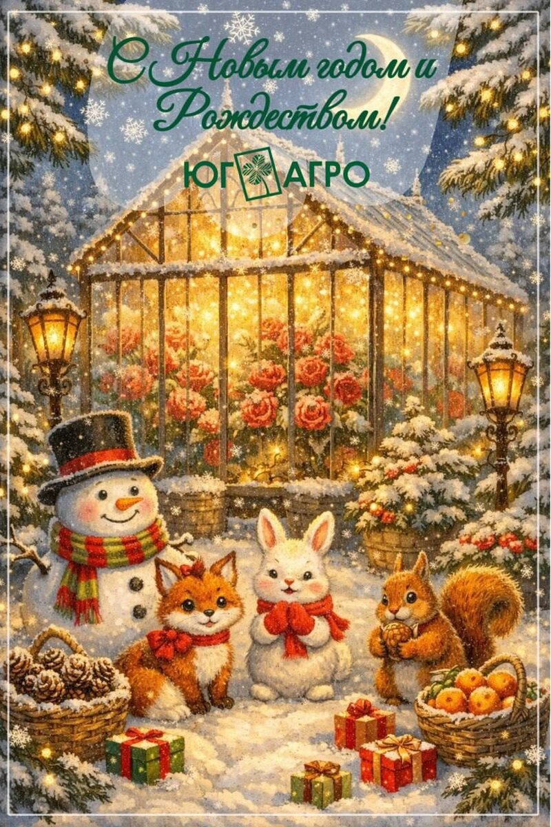 Новым 2026 годом! ❄️ Пусть он будет полон радостей и добра, головокружительных успехов и незабываемых впечатлений ! ✨ Спасибо каждому из вас, что были с нами в прошедшем году ❤️ До встречи в Новом, 2026 году! 🎄 С наилучшими пожеланиями, коллектив ЮГ🍀АГРО