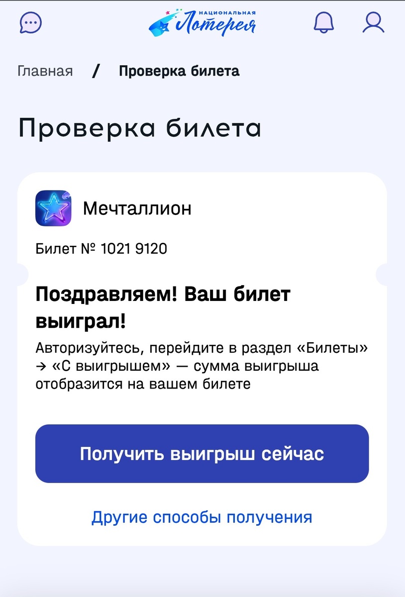 Мы выиграли в лотерее "Мечталлион" - пусть сумма выигрыша останется интригой для наших читателей, но мы довольны!❤️ На сайт "Национальной лотереи" периодически невозможно зайти. 1 миллиард рублей новогодней лотереи «Русское лото» разделили сразу три россиянина. Победителями стали жители Тюменской, Свердловской и Новосибирской областей. Они выиграли по 333,3 миллионов рублей каждый. Ждём новый розыгрыш от Столото - возможно нам повезёт снова! 💸 Подписывайтесь на канал и жмите лайк - чтобы не пропустить новые публикации! Будем благодарны за репосты!