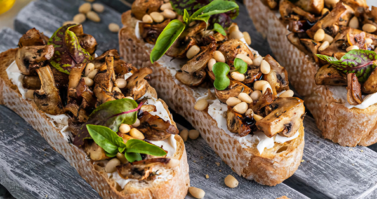 Брускетта «Лесная симфония» — жареные грибы на креме из кешью