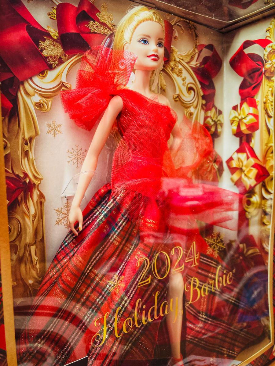 У меня совсем не было новогоднего настроения. Но была новогодняя кукла в коробке – блондинка Holiday Barbie 2024.