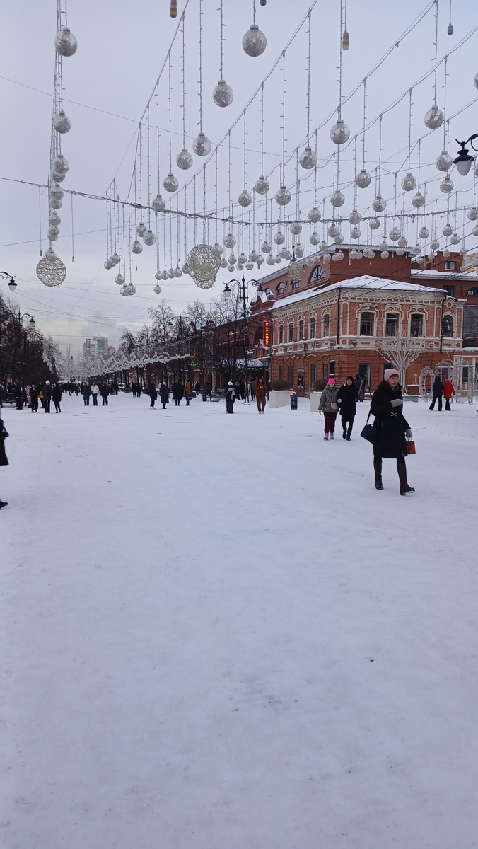 Обещала показать главную пешеходную улицу Челябинска — и вот мы на Кировке. Ох, мы замёрзли, но не пожалели о решении выйти на прогулку. Улица сразу впечатляет: витрины наряжены к Новому году, атмосфера праздничная. На улице расположились интерактивные парки, кафе, бары и магазины. Кстати сувенирных лавок мало— в сравнении, скажем, с Казанским Арбатом. У входа на улицу встречает бронзовый городовой — по‑нашему полицейский, словно намекающий: «Веди себя хорошо». По легенде, если сфотографироваться с ним, общение с современными стражами порядка станет проще. У главного входа в ирландский паб «Fox&Goose» приютились лиса и гусь — персонажи народной ирландской сказки, хорошо знакомые англоязычным гостям города. Возле главного входа в Альфа‑Банк сидит бронзовый «профессиональный нищий» — живой символ контраста между благополучием и нищетой. Местные верят: если подкинуть в его шапку пару монет и погладить по голове, можно смело загадывать желание. Чуть дальше — погонщик верблюдов, напо