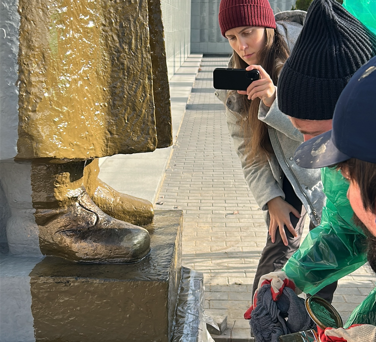 Площадь Героев в Липецке — площадь на границе Правобережного и Советского округов города, расположенная на пересечении улиц Гагарина и Зегеля. На площади находится мемориальный комплекс, посвящённый воинам-героям, погибшим в годы Великой Отечественной войны 1941–1945 годов. Именно о его реставрации пойдет речь в этой статье. Это не первый объект восстановлением ко которого занималась наша команда в Липецке, летом 2025 года мы восстановили мозаику в подземном переходе в самом сердце города. Летом того же года мы произвели осмотр «Площади Героев» для составления программы восстановления. На площади героев находится множество элементов монументального искусства. Для удобства я разделил их по разным объектам: 1. Барельеф «Фронт и тыл». Установлен в 1985 году справа от обелиска на площади Героев. Многофигурная композиция создана липецкими скульпторами Ю. Д. Гришко и Е. А. Вольфсоном. На 50-метровом медном полотне изображены 13 «знаковых» фигур — от воинов до крестьянина со снопом хлеба. 2.