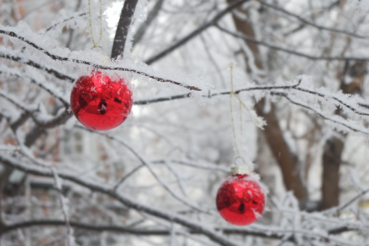 Второе января 2026-ого года. Просто фиксирую, какая дивная нынче погода: Все мои украшательства из сосулек и серебра, конечно, в такую погоду затерялись, а вот красные шарики смотрятся преотлично: Поразглядывать серебряное убранство и заодно "проверить зрение" можно в галерее ниже: Можно подумать, что я дальше двора не прохожу никуда - только птиц кормлю: Но это не так: Хожу я и по соседним дворам (не одна я украшаю деревья в нашем районе): И вообще в центр гуляли (и по "бродвею" фланировали, и во дворы на Декабрьских Событий не чурались заглядывать нынче! - ибо даже собаки спят в первые дни января), но об этом будут другие статьи - не такие "тяп-ляп", а посерьёзнее, побогаче на текстовое сопровождение;) Что-то буду показывать уже на днях;) Но вернёмся к природе и району, который "по Хуану сомбреро";) - ну, я та ещё "принцесса из хрущовки": Тут у меня получилось чудесное фото с природными украшениями: Очень нравится этот "натюрморт" - хвойные, лиственные... и ёлка, и берёзка, и клён -