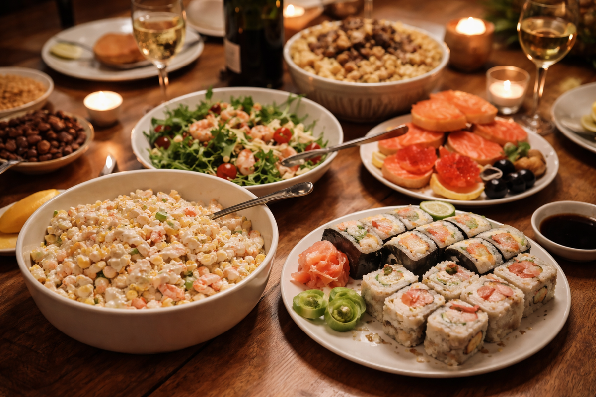 Салат — понятный, немного деликатесов — ровно столько, сколько нужно.