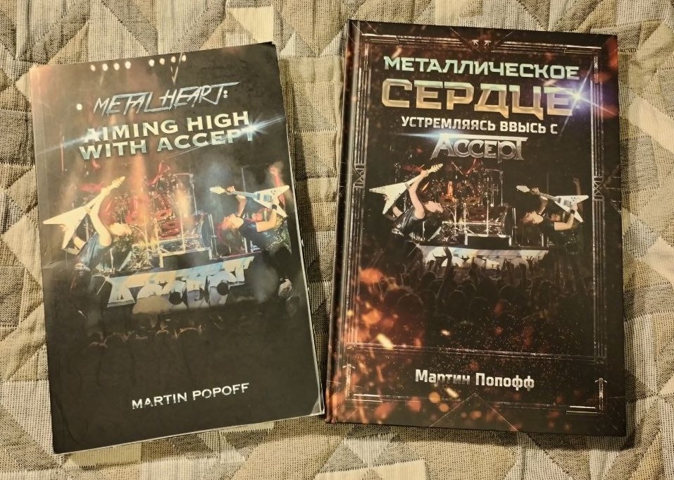 Приветствую всех! Так получилось, что среди подарков, полученных на Новый год, для меня оказалось нечто совершенно неожиданное — книга Мартина Попоффа о легендарной немецкой рок-группе Accept, под названием «Металлическое Сердце: Устремляясь ввысь с Accept». Любопытный парадокс, заключался в том, что этот дар послужил триггером для уникального сравнительного анализа: у меня уже стояла на полке канадская версия, купленная несколько лет назад прямо с официального сайта автора. Я впервые получил возможность сравнить “оригинал” и “переиздание” лицом к лицу. Мартин Попофф — фигура знаковая в мире рок-журналистики, и его труд о немцах Accept априори ценен. Однако, при первом же тактильном контакте с двумя книгами стало ясно: перед нами не просто два издания, а две разные философии книгопечатания. Мое канадское издание “Metal Heart: Aiming High With Accept”, купленное, к слову, с заветным автографом самого Попоффа (что придает ему сентиментальную ценность), оказалось на удивление утилитарным