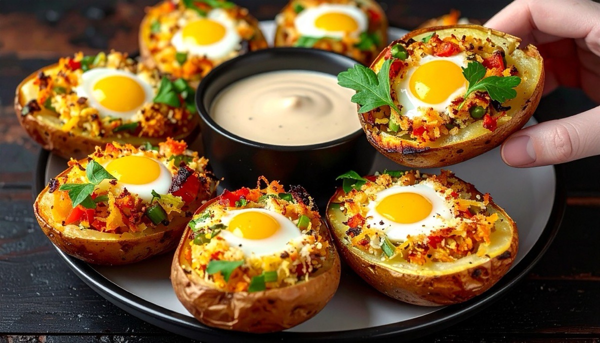 ▌ Идеальный праздник вкуса: Картофельные лодочки с яйцами Привет, друзья! Сегодня мы приготовим потрясающее блюдо, которое станет настоящей находкой для праздничного стола. Если вы хотите удивить гостей вкусным ужином, который готовится легко и быстро, попробуйте наш рецепт картофельных лодочек с перепелиными яйцами. Этот простой и доступный способ приготовления картошки и яиц идеально подойдет тем, кто хочет насладиться вкусом блюда, сэкономив при этом время и силы. ▌ Ингредиенты: - 4 крупные картофелины - Растительное масло - 1 морковь - 5 шампиньонов - 1 сладкий красный перец - Зеленый лук - Петрушка - Чеснок - Соль, черный молотый перец, копченая паприка, ароматные травы - 3 ст.л. натурального йогурта - 8 перепелиных яиц - Сливочный сыр ▌ Шаг 1: Запечём картофель Разогрейте духовку до температуры 200°C (около 392°F) и подготовьте форму для запекания. Тщательно промойте и обсушите картофелины, протрите каждую солью и небольшим количеством растительного масла. Разложите картофель на