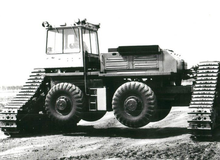 Машина предназначалась для освоения целинных земель, глубокой вспашки плотных и тяжёлых грунтов, а также восстановления засоленных почв в отдалённых регионах СССР. ⚙Характеристики ТЭТ-1000: двигатель — танковый дизельный Т6ДН, мощность — 700 л. с.; сила тяги — 18 тонн; масса — 32,55 тонны; максимальная скорость на гусеничном ходу — 11 км/ч, на колёсном — 18 км/ч. 🛠Конструкция: гусеницы и колёса были размещены перпендикулярно друг другу, что позволяло сэкономить место. Водитель-тракторист поворачивал своё рабочее место на 90 градусов в зависимости от того, на каком движителе предстояло ехать дальше. ✅После испытаний в Казахстане выявились недостатки: сложность конструкции, дороговизна производства и обслуживания. Несмотря на впечатляющие характеристики, трактор признали непрактичным для массового выпуска. Единственный прототип, так и не попавший на поля, был демонтирован. Сделано в СССР и не только
