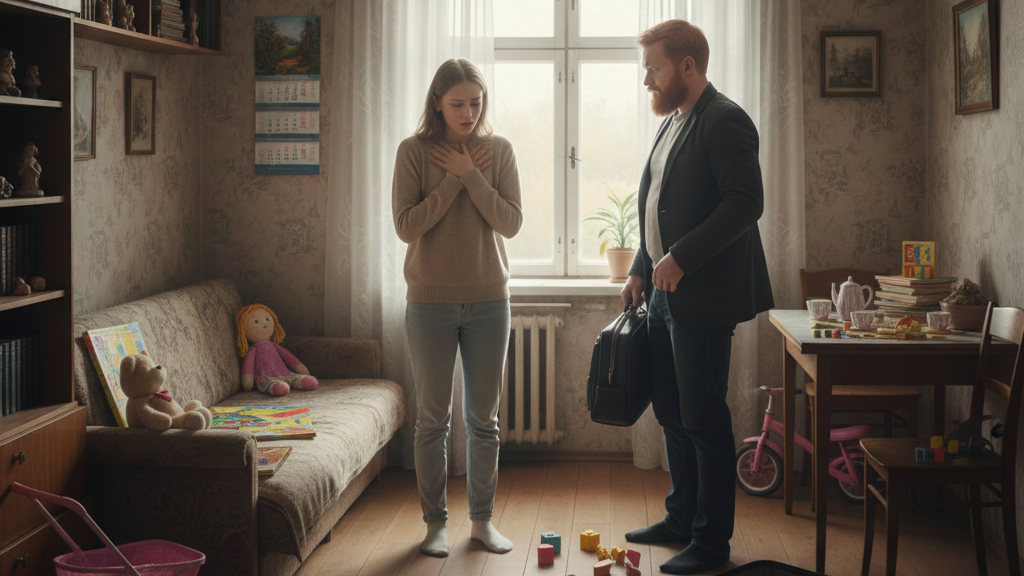 Вика осталась посреди комнаты, злая, растрёпанная. Она посмотрела на закрытую дверь детской. Злость на мужа переплавилась в глухое раздражение на всё, что её связывало с этим домом.