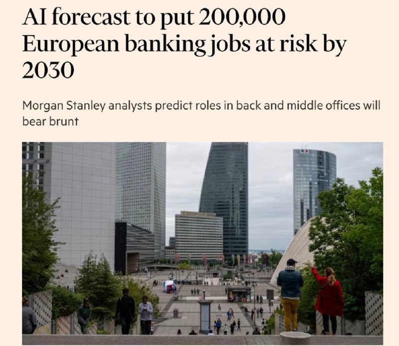 К 2030 году 35 крупнейших банков Европы могут сократить до 10% штата — это больше 200 тысяч человек. Главный драйвер — агрессивное внедрение ИИ: алгоритмы берут на себя аналитику, риск-менеджмент, работу с клиентами и часть бэк-офиса. Эксперты уже нервничают: если молодых сотрудников будет вытеснять автоматизация, отрасль рискует потерять целое поколение людей с живым опытом. А потом эти же банки внезапно обнаружат, что «некому думать», когда модель ошиблась. Мы сами вырастили ИИ, который съедает джунам карьеру ещё до первого повышения. Это нормальная эволюция или нас ждёт самый тупой финансовый кризис в истории? #Techtaim