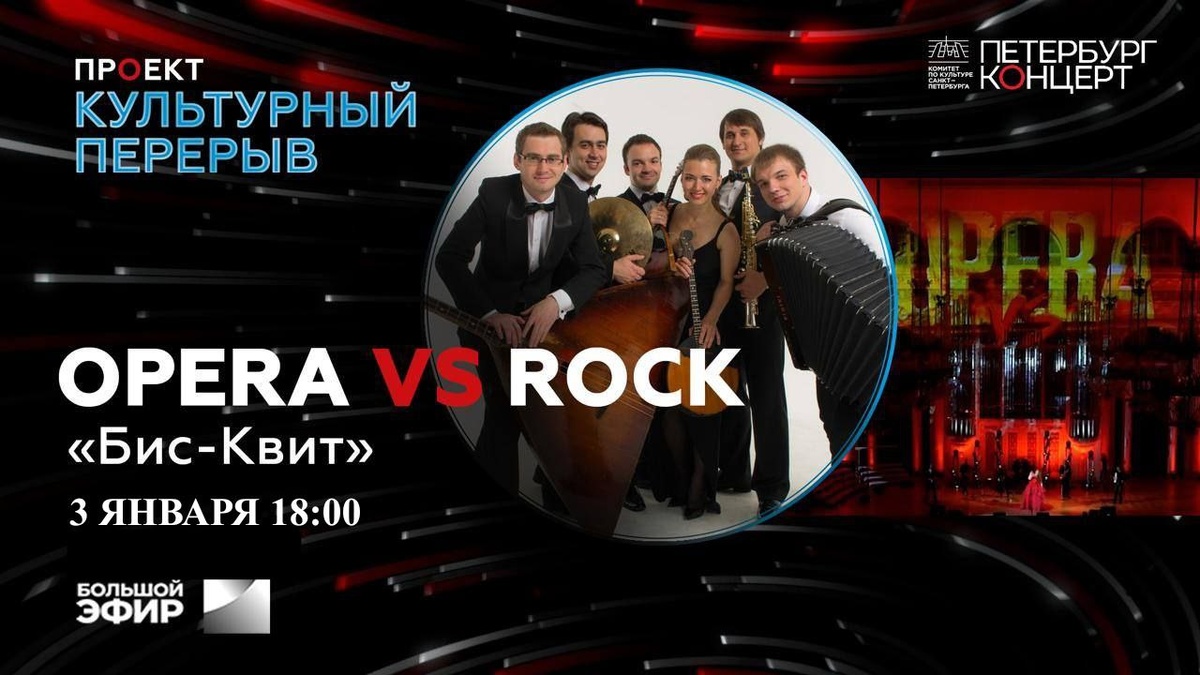 ». В эту субботу в эфире мультимедийное шоу «Opera vs Rock» — программа ансамбля «Бис-Квит» и звезд мировой оперы: Ольги Пудовой, Дмитрия Григорьева, Ирины Шишковой, Бориса Степанова, Цветаны Омельчук и других. В основу программы легли хиты классических рок-групп, среди которых: Metallica, Deep Purple, Nirvana, Europe, Muse, Blur, Bon Jovi, Coldplay, а также бессмертные творения величайших композиторов: Моцарта, Мусоргского, Бизе, Римского-Корсакова, Стравинского, Чайковского, Ханса Циммера и многих других. Прямой эфир телеканала доступен обладателям спутникового телевидения «Триколор», а также всем желающим по ссылке.