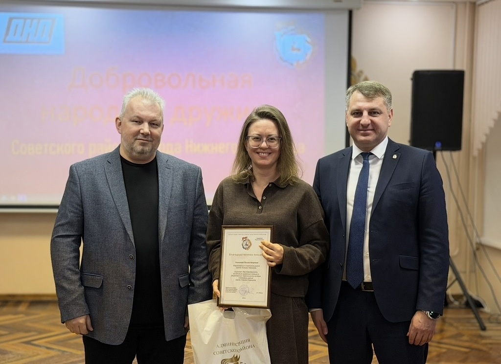 В администрации Советского района Нижнего Новгорода подвели итоги работы добровольной народной дружины за 2025 год и наградили наиболее активных участников. С приветственным словом к участникам обратился глава Советского района Александр Иванов. Он отметил вклад добровольцев в обеспечение общественного порядка и поблагодарил их за участие в патрулировании улиц и сопровождении массовых мероприятий. «Добровольная народная дружина — важная часть системы общественной безопасности. Ваша ежедневная работа помогает поддерживать порядок и создавать комфортную среду для жителей района», — подчеркнул Александр Иванов. По итогам 2025 года 28 членов добровольной народной дружины были отмечены благодарностями главы района за активную гражданскую позицию и содействие в охране общественного порядка. Кроме того, глава района Александр Иванов и директор департамента по безопасности и мобилизационной подготовке администрации Нижнего Новгорода Алексей Кашканов вручили удостоверения 15 новым дружинникам,