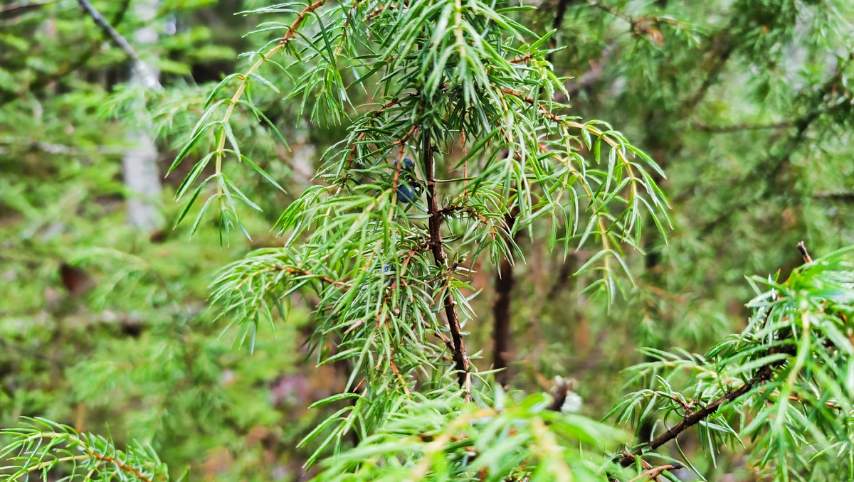 Я искал кусты, которые растут в тени — у них хвоя мягче и сочнее. Ветки можжевельника нельзя ломать как попало.