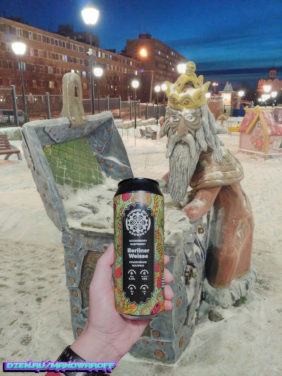 А варит это пиво пивоварня Hammer Mill Brewery. Дебют пенного состоялся в августе минувшего года. У меня баночка посвежее - от 29 сентября. А вскрыл я ее 2 января. Срок годности составляет 360 суток при хранении в холодильнике. В составе присутствует лактоза, пюре крыжовника и малины, а также некие специи. ТТХ: Пиво мутноватое, полупрозрачное. Пены много, опадает шустро. В аромате яркая малина. Вкус кислый, малиновый. Крыжовник появляется лишь в кисловатом послевкусии вместе с солодом. Пьется прекрасно. Довольно вкусно, но слишком просто. Восемь баллов. Пиво брал "В пене", но ценник не помню. В статье использованы авторские фотографии из Мурманска.