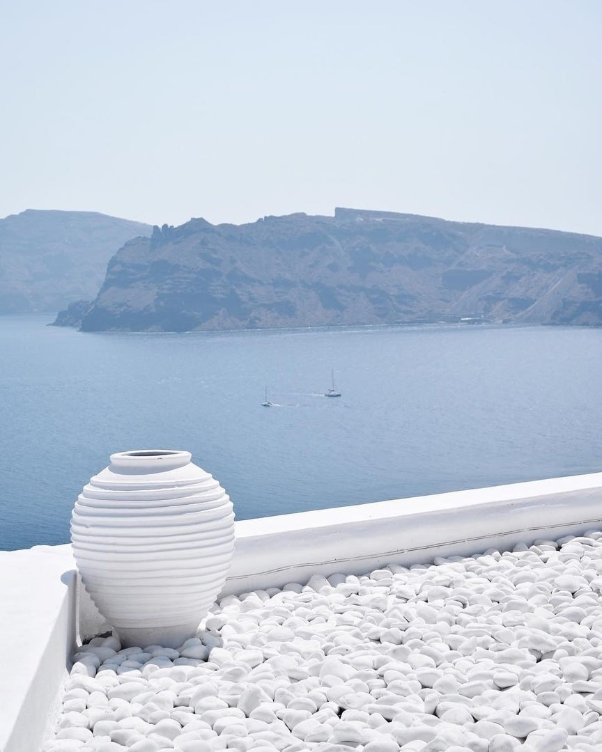 Санторини, Греция - белый город в синих волнах.