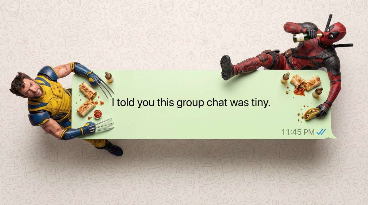 ✔️ Инструкция: Для этого заходим в VeoSeeBot или на сайт , выбираем "Работа с изображениям", Nano Banana Pro и пишем промпт ниже: Гиперреалистичная макросъёмка сверху вниз. Длинный, светло-зелёный пузырь речи WhatsApp, выступающий в роли обеденного стола. Два настоящих живых человека (уменьшенные до крошечных размеров) сидят по разные стороны. Это НЕ пластиковые фигурки; У них заметная текстура кожи, естественные волосы и реалистичные складки одежды. Они едят настоящую еду, которая выглядит свежеприготовленной, а не пластилин. Внутри написано: «ВСТАВИТЬ ТЕКСТ». В правом нижнем углу отмечено время «15:33» и синие галочки. Фон полностью заполнен плотным, бесшовным узором в стиле WhatsApp (иконки линейных рисунков), покрывающими всю поверхность от края до края без пустых пробелов, напоминая оригинальные плотные обои WhatsApp. Профессиональное студийное освещение, разрешение 8k, чёткий фокус. ❤ Примерами своих генераций вы можете поделиться в нашем уютном чатике @neuro_smoking #nanobana