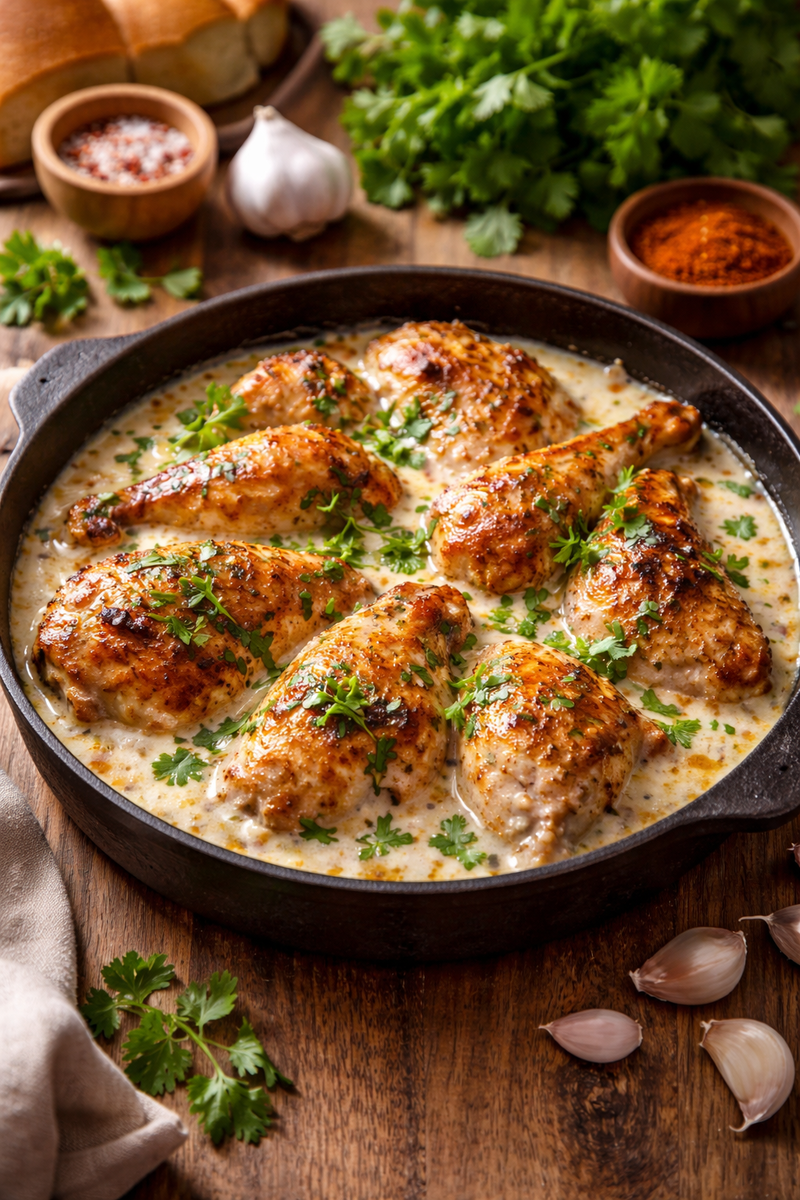 - Соус: Шкмерули не будет без вкусного чесночного соуса. Обратите внимание на его консистенцию — он не должен быть слишком жидким, чтобы хорошо покрывать курицу.