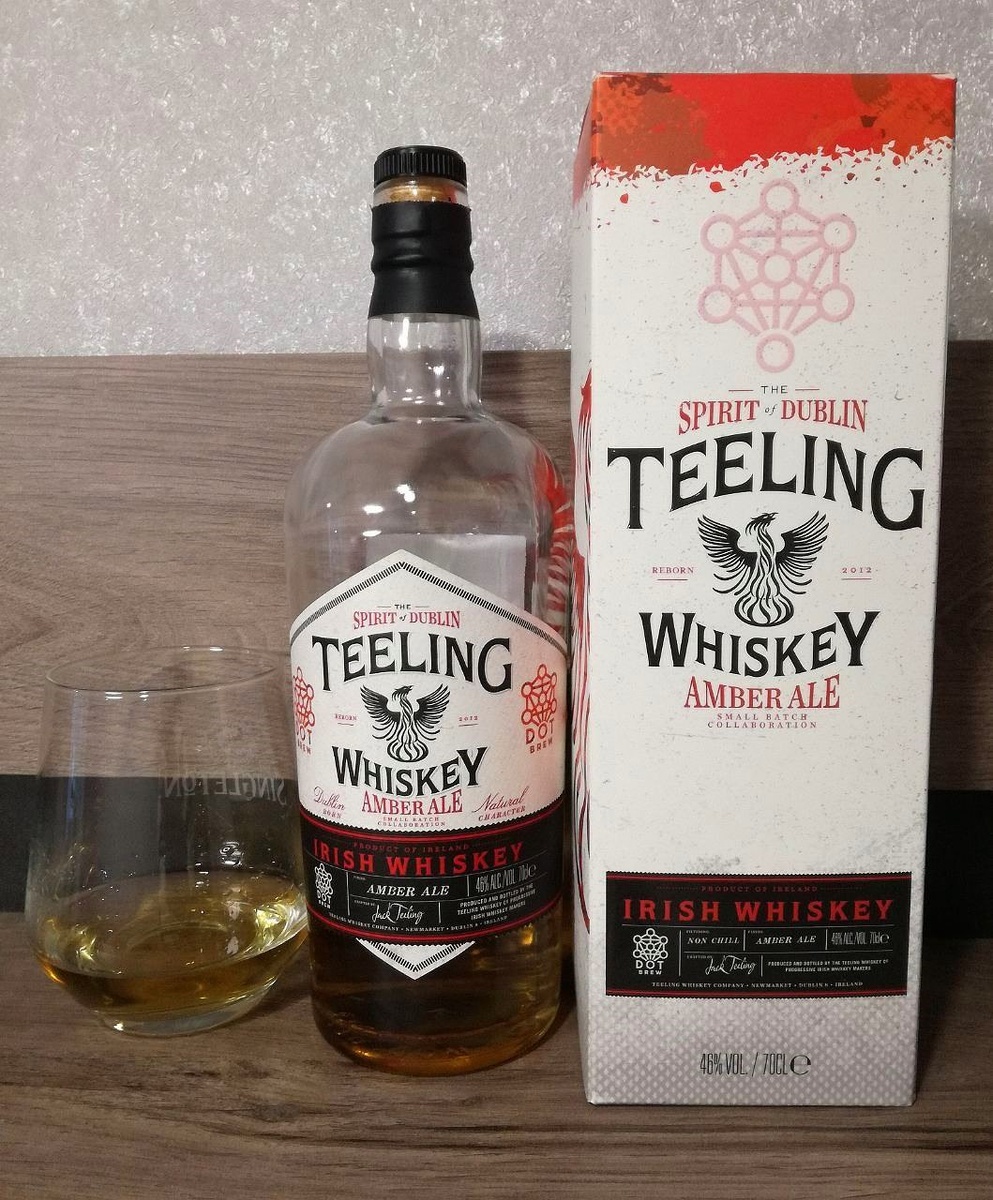 Основой релиза Teeling Amber Ale является бленд, известный на рынке как Teeling Small Batch (фото ниже), экс-бурбонной выдержки с годичным финишем в бочках из-под никарагуанского рома Flor de Caña. После освобождения из-под виски экс-ромовые бочки направляются
