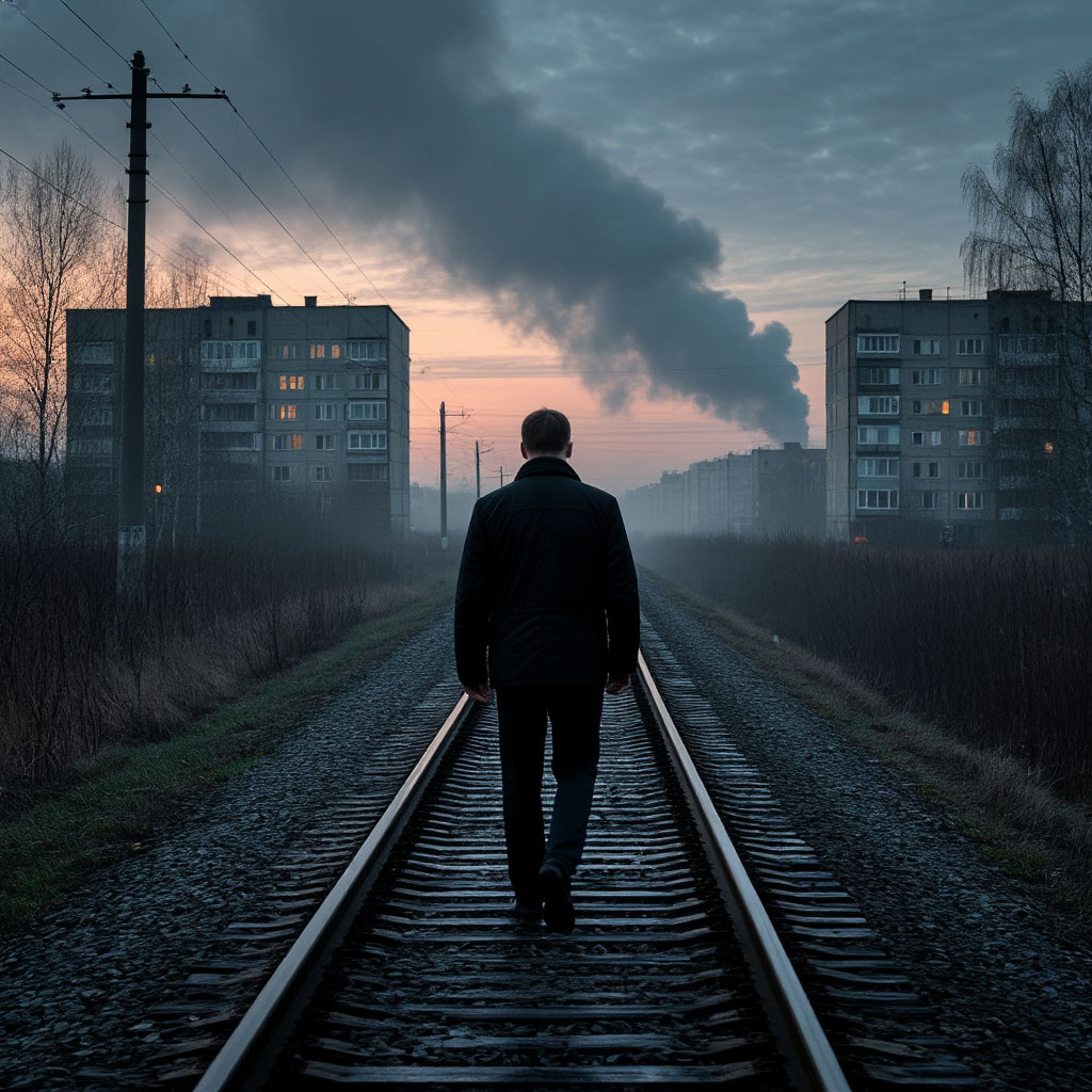 Городок спал. Не то чтобы крепко, скорее — дремал устало, как старый солдат после караула. Улицы, выстроенные в строгой геометрии советских времён, утопали в серой октябрьской слякоти. Пятиэтажки-«корабли» с облупленным кирпичом, редкие фонари, далёкий гудок товарняка — вот и вся вселенная. Капитан Алексей Соколов шёл домой, чувствуя, как тяжёлая шинель насквозь пропиталась сыростью и усталостью. Учения затянулись. Он мечтал о тёплой квартире, ужине и… жене.