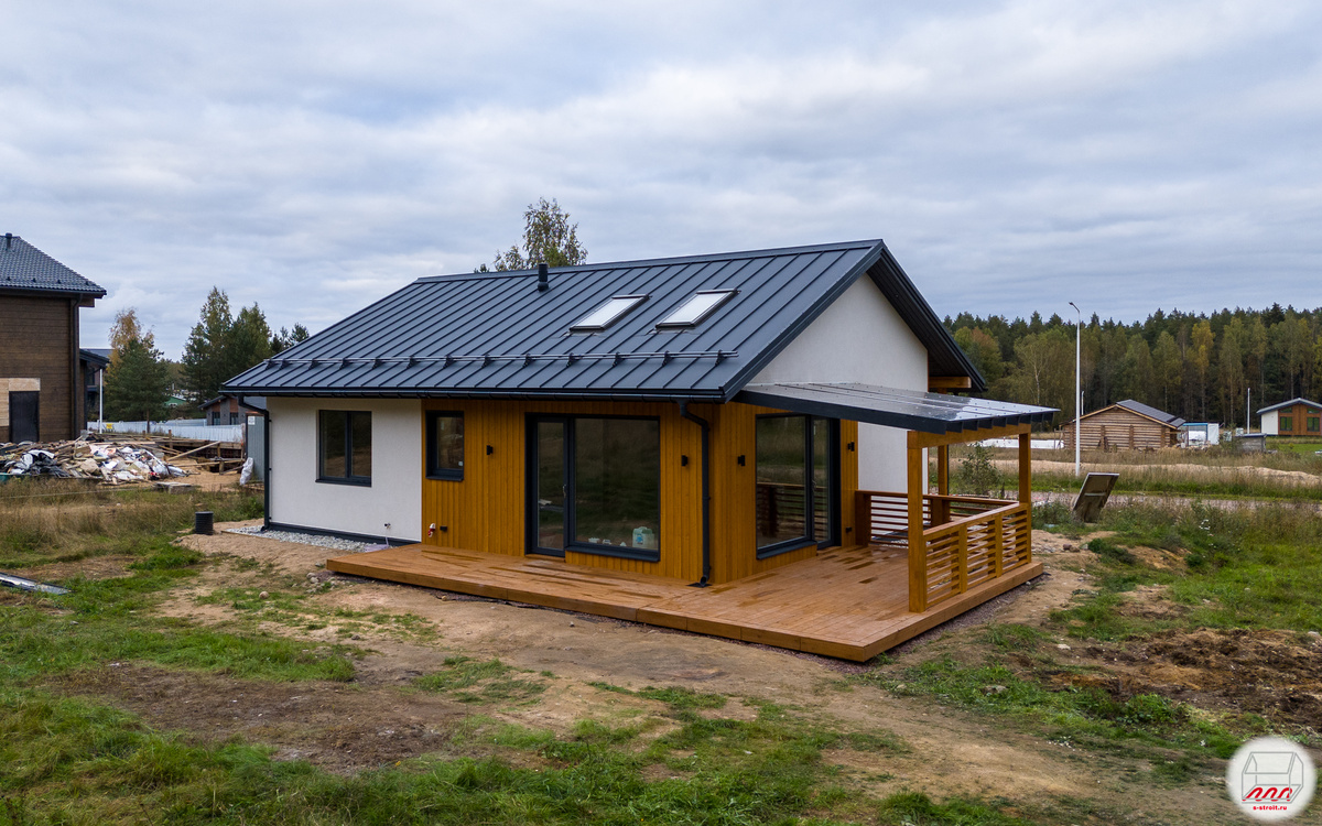 Одноэтажный каркасный дом на утеплённой шведской плите мы закончили в минувшем октябре, наш объект Борисово-5 в Ленинградской области: