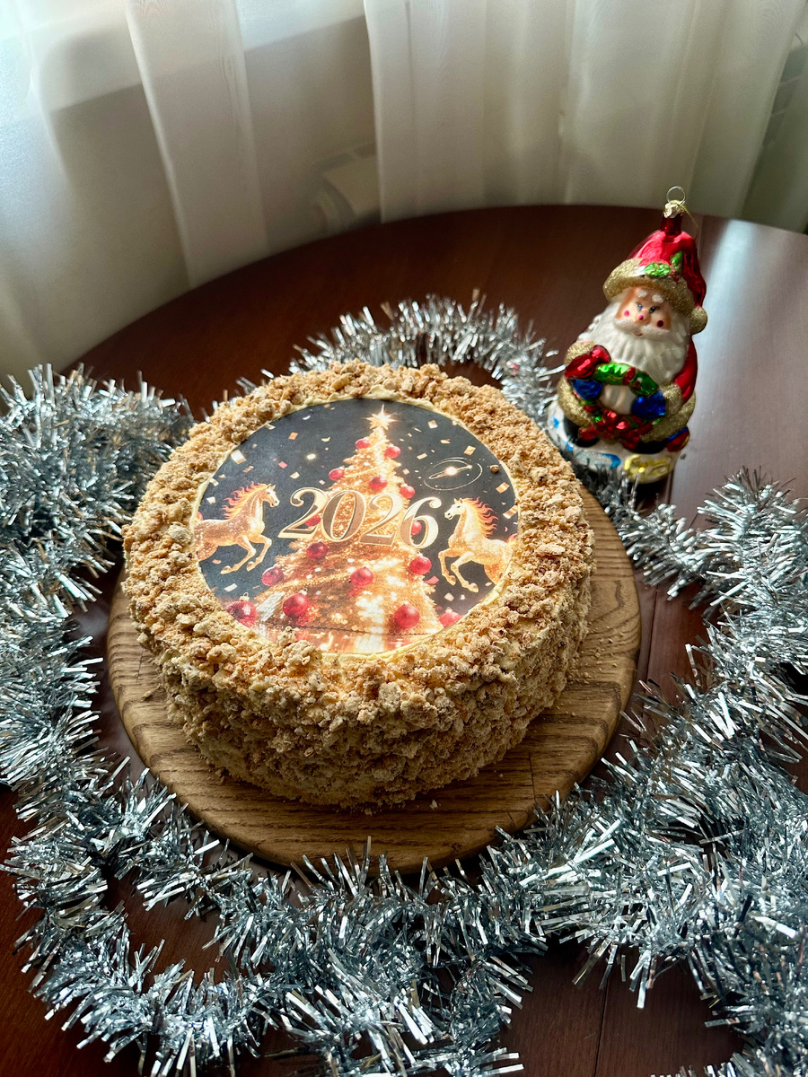 Еще поделюсь одним фото, это бисквитный торт с прошлого Нового года, пекла естественно тоже я))