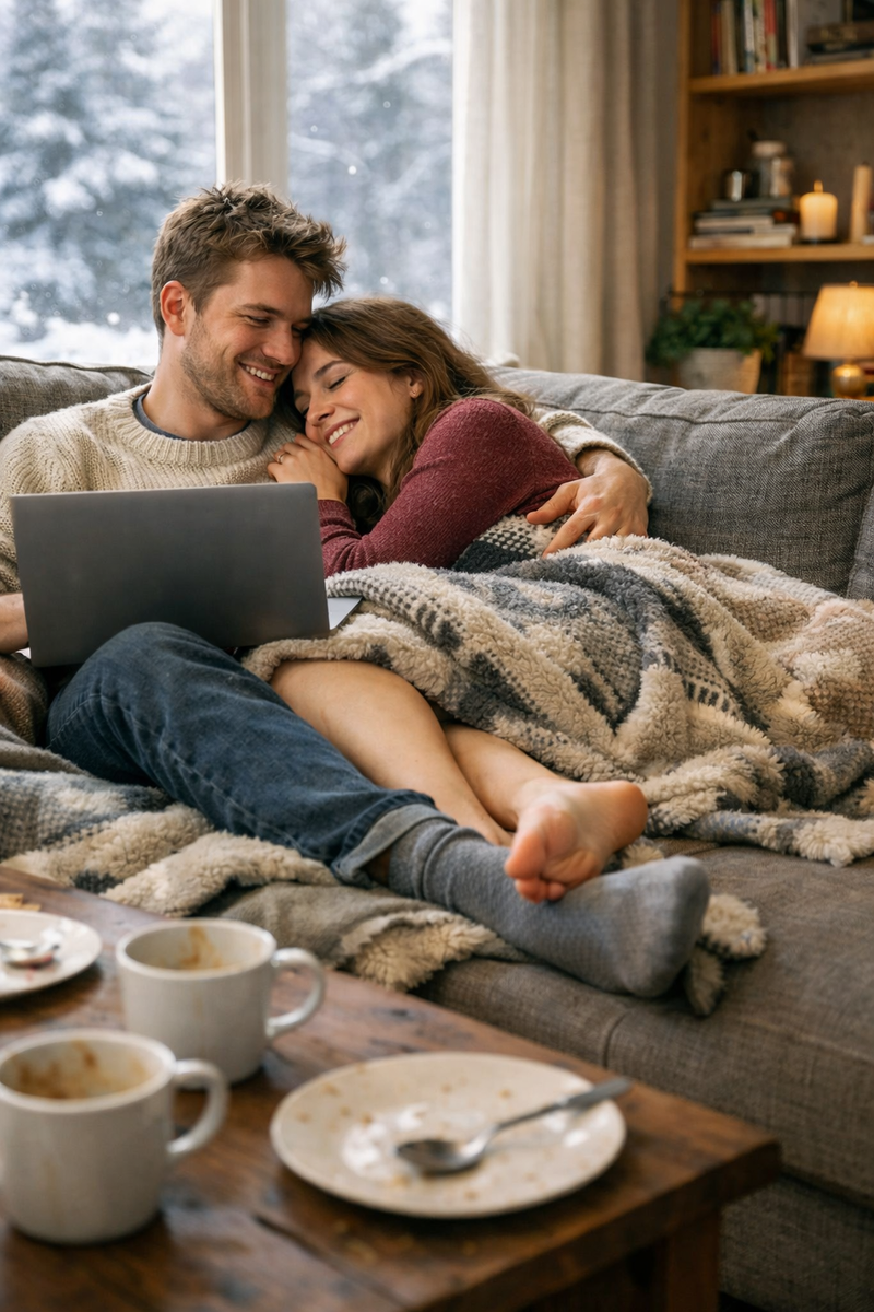 Знаете, что самое сложное на каникулах? Разрешить себе ничего не делать. Мы привыкли быть продуктивными. «Надо же куда-то сходить», «нельзя же просто так лежать». А я вам скажу: иногда лучший отдых - это просто быть вместе и ничего не делать. Без плана, без цели. Это целое искусство - правильно лениться вдвоем. Сейчас научу вас этому мастерству. Правило 1: Отмените все «надо» «Надо сходить в музей», «надо навестить родственников», «надо разобрать шкаф». Знаете что? Не надо. Это ваши каникулы. Моя знакомая Лена рассказывала: они с мужем каждые праздники планировали кучу дел. К концу были выжатыми как лимоны. Однажды решили: одни выходные вообще ничего не планируем. Просто лежим дома. Это были лучшие выходные за пять лет. Правило 2: Создайте уютное гнездо Ленивые каникулы - это про максимальный комфорт. Плед, подушки, приятный свет, гирлянды. Все, что делает пространство уютным. Вынесите на столик чай, печенье, фрукты. Чтобы не вставать каждые полчаса. Включите приятную музыку или тишину
