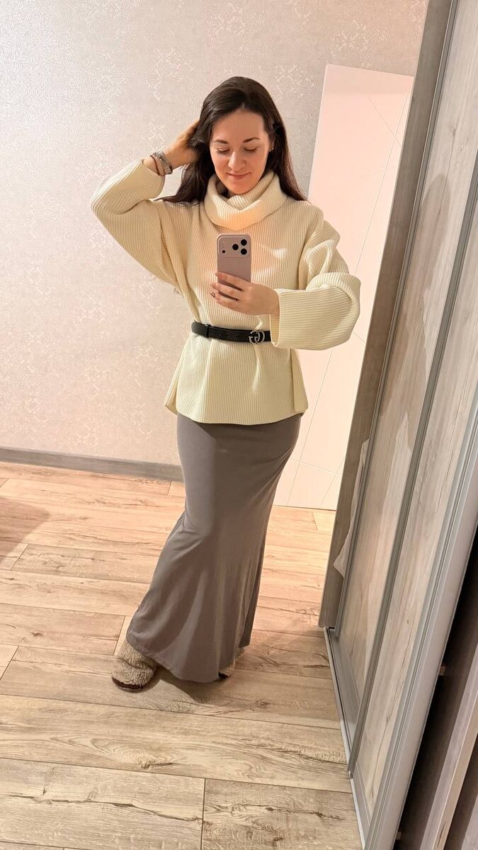 ! Сегодня поехала за свитером. А его не было😅 все раскупили! Распродажа оказывается. Но я не расстроилась, потому что вместо свитера за 9000, я купила 2 пары взаимно сочетавшихся юбок и свитеров за 14000. Стала формировать гардероб по принципу взаимосочетаемости капсулы, это позволяет их минимума вещей, которые любишь и носишь создавать кучу разных образов сверху и снизу. Кайф!!! Я очень довольна :) А еще, моя цель - создать себе внешний гармоничный образ в одежде, эстетичный и про меня - планомерно реализуется, потому что это чтоит в задачах на этот год! А ты свои мечты доводишь до реализации в задачах года или так и «висят» твои мечты в ожидании чуда реализации? Делись в комментариях