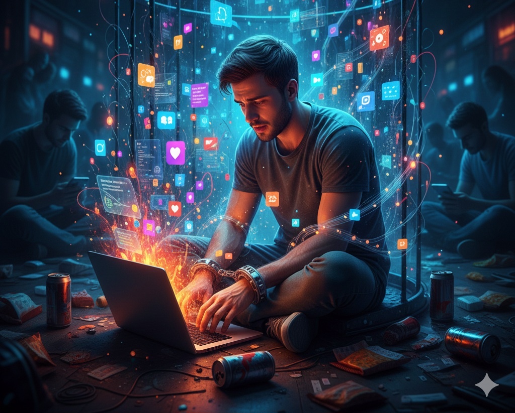 Каждый лайк, комментарий или уведомление — это крошечный впрыск дофамина, гормона предвкушения. Соцсети спроектированы как игровые автоматы: вы «дергаете за рычаг» (обновляете ленту) и не знаете, что выпадет на этот раз. Эта неопределенность вызывает привыкание быстрее, чем мы успеваем это осознать.
