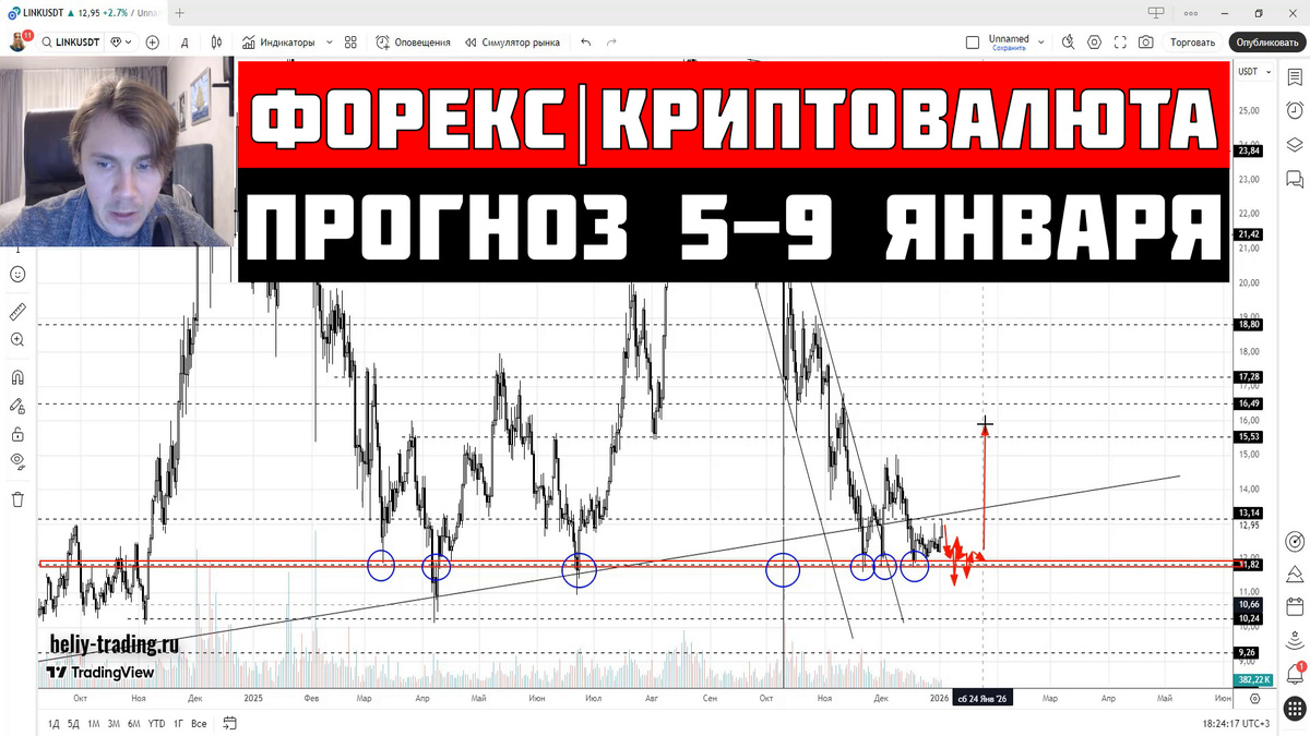 Прогноз Форекс и Криптовалют на 5 - 9 января 2026: EURUSD евро/доллар, GBPUSD фунт/доллар, USDCHF доллар/франк, USDJPY доллар/иена, Индекс доллара DXY, USDRUB доллар/рубль, CNYRUB юань, Криптовалюта, Биткоин BTC, Эфириум ETH, Ripple XRP, Binance Coin BNB, Solana SOL, Chainlink LINK, Uniswap UNI, Litecoin LTC, Toncoin TON, Индекс криптовалют TOTAL3, Золото XAUUSD, Серебро XAGUSD, Нефть BRENT, Природный газ, Фондовые индексы, S&P 500, Nasdaq, РТС, ММВБ, Инвестиции, Трейдинг, Технический и Фундаментальный анализ. EUR/USD – евро доллар вновь не пробил исторический уровень сопротивления 1.1805 и развернулся на краткосрочную нисходящую коррекцию.