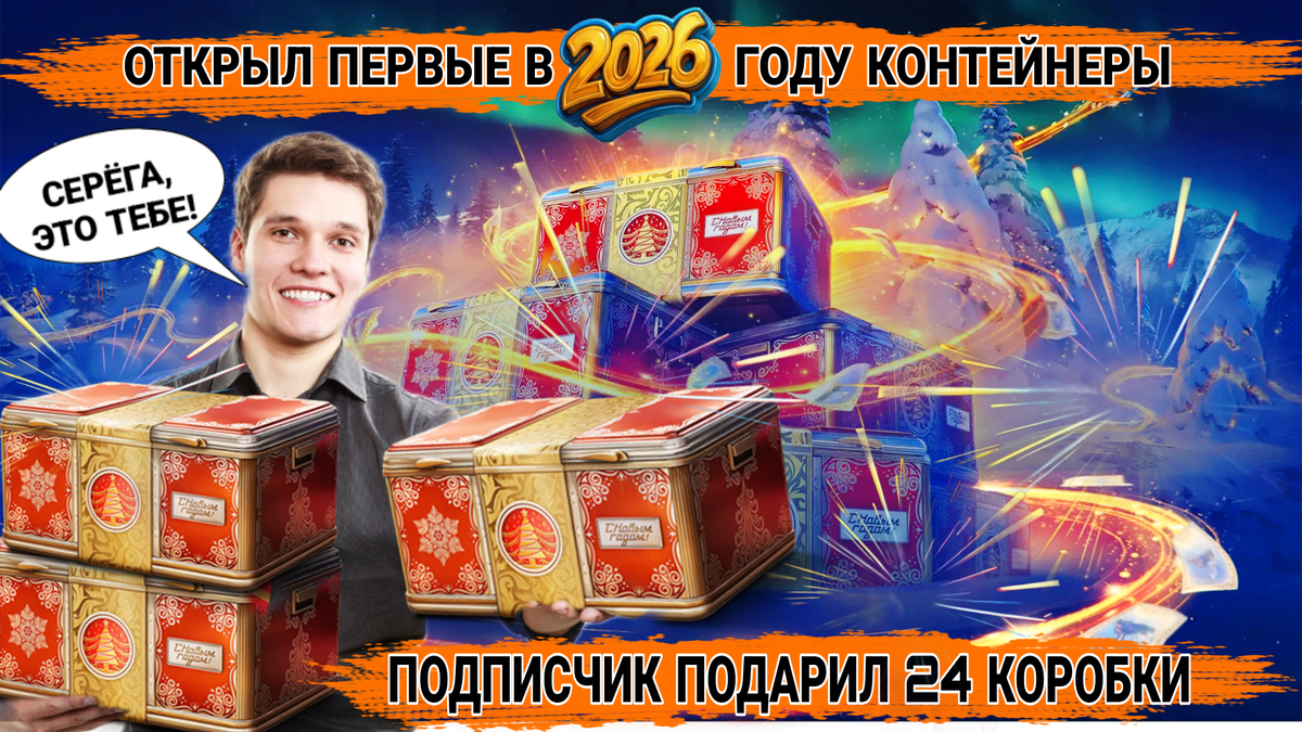 Привет танкисты! Вчера я снова открыл новогодние коробки 2026 в мире танков! Танковое настроение в том и в этом году совсем не благоволило мне это делать. Я правда наотрез отказывался и совершенно не хотел покупать эти коробки так как в начале новогоднего наступления 2026 я уже пытался безрезультатно схватить удачу за хвост. Понимая, что мне ничего не светит и видя свою безнадежность в этом плане я и зарёкся их больше не покупать. Но! В дело вмешался мой давнийший подписчик Андрей Валентинович, который регулярно на новый год присылает мне подарок в виде танковых контейнеров.